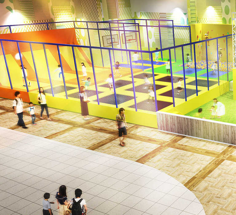 飛び跳ねながら遊べるトランポリンゾーン★ ふわふわなトランポリンでぴょんぴょん飛び跳ねよう!