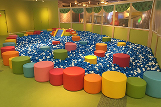 全身をつかって遊べる大きなボールプール! プールの中にはすべり台もあるよ★