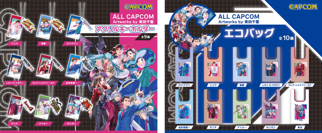 カプコン所属イラストレーター・実田千聖による、全9キャラクターのイラストグッズが新登場! 全国のカプセルラボでも「アクリルキーホルダー」「エコバッグ」がカプセルトイで手に入る!