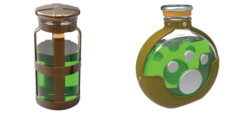 飾って楽しむだけでなく、飲料ボトルとしても使用できるスグレモノ。このボトルで緑色のドリンクを飲めば体力回復?! 黄色いドリンクならスタミナ回復、赤いドリンクなら鬼のごとき力を得られるかも…?
