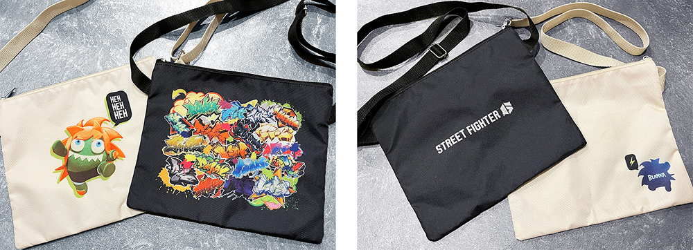 思わず日替わりで使いたくなるラインナップ豊富な「クリアマルチケース(全10種)」に、ファッションのワンポイントになってくれる「サコッシュ(全2種)」。そしてゲームソフトやコントローラーやちょっとしたデスクまわりのお片付けに大活躍な「折りたたみコンテナボックス(全2種)」と、ストリートカルチャーであふれた『ストリートファイター6』の世界感を再現する景品を3アイテムご用意いたしました。