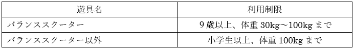 お客様が利用制限の基準を満たさない場合は、当該遊具を利用することはできません。