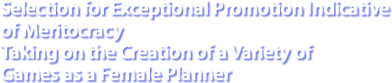 In the Consumer Games R&D Human Resources Division, there are no special boxes for foreigners or women in terms of employment. At present, there are about 900 developers, of which 20% are women and 5% are foreigners. That people were hired based on their capability is evident in the diversity of our workforce. In development, there is a comparatively large percentage of women. The number of “mommy creators”, women who continue working after giving birth, is on the rise. This, I think, is the result of having a wealth of support systems in place, such as shortened working hours, childcare leave and pre-/post-natal leave. We are also moving forward with the establishment of on-site daycare centers among other efforts to create an environment where female employees can make the most of their abilities.