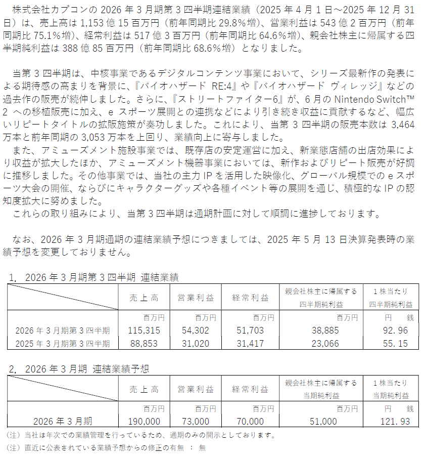 2026年3月期第3四半期決算の連結業績は、前年同期比で増収増益