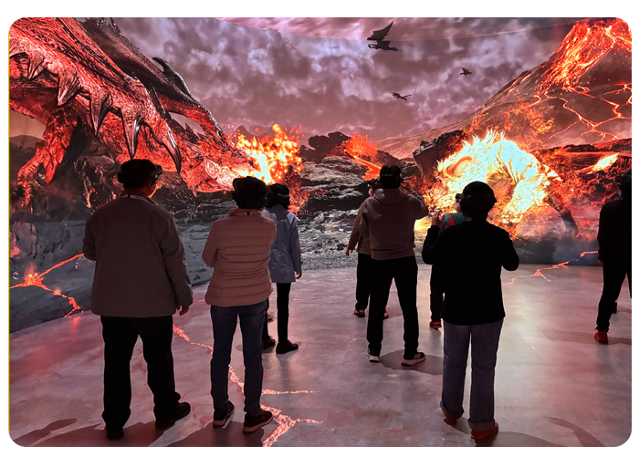 アイルーとのふれあいや迫り来る大型モンスターの驚異など、壮大な世界観への没入体験を来館者に提供し、好評を博しました。
